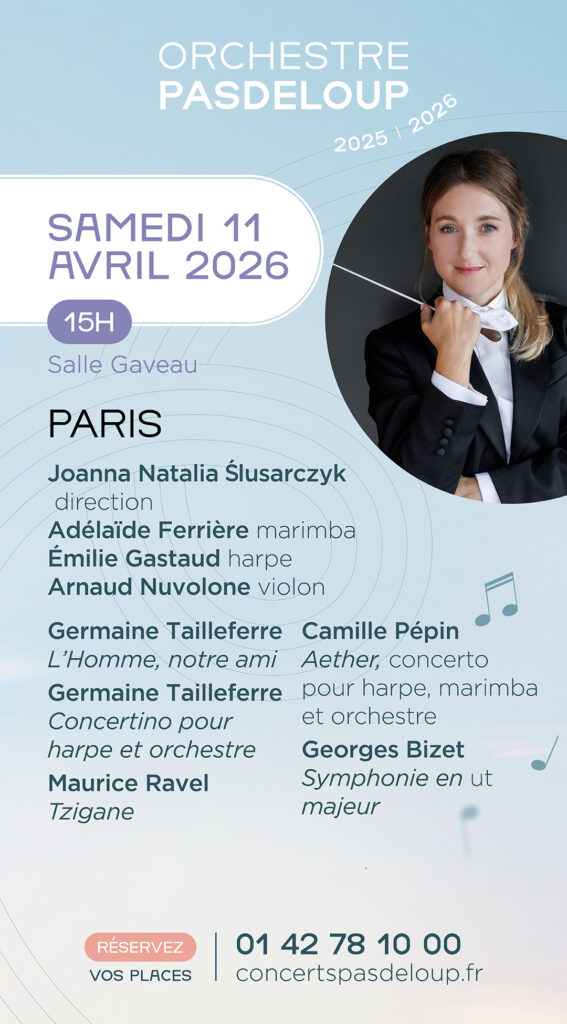 Pasdeloup. En réunissant des pièces de musique contemporaine et des pièces écrites par des compositrices du passé, l’Orchestre renforce également son engagement auprès des artistes de la nouvelle génération et propose une action concrète en faveur des femmes, qu’elles soient cheffes, solistes ou compositrices.