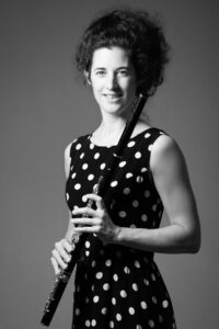 Julie Huguet joue sur une flûte moderne en bois de grenadille d’Afrique, faite main chez Yamaha au Japon, et des copies de flûtes anciennes de Jan de Winne.